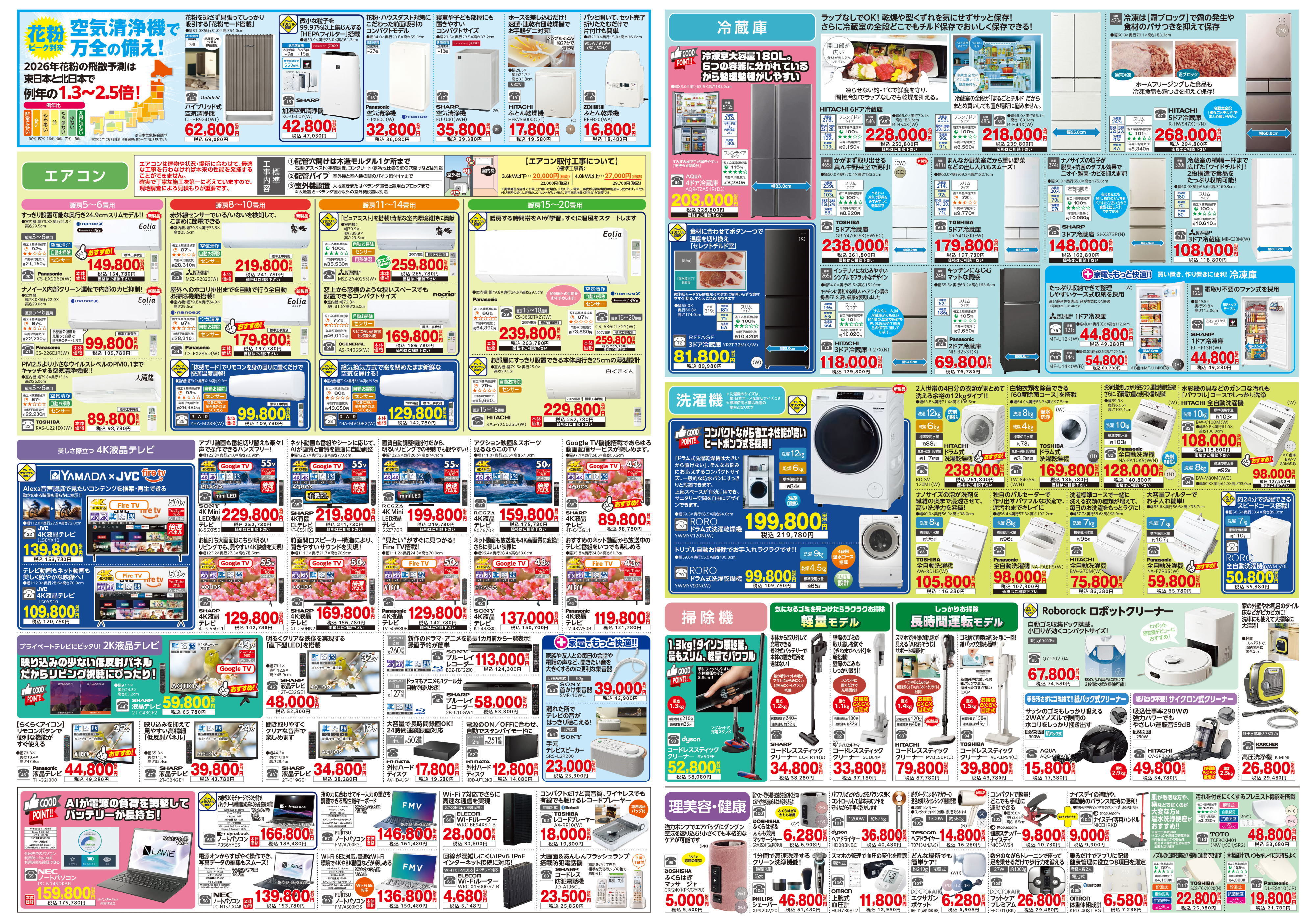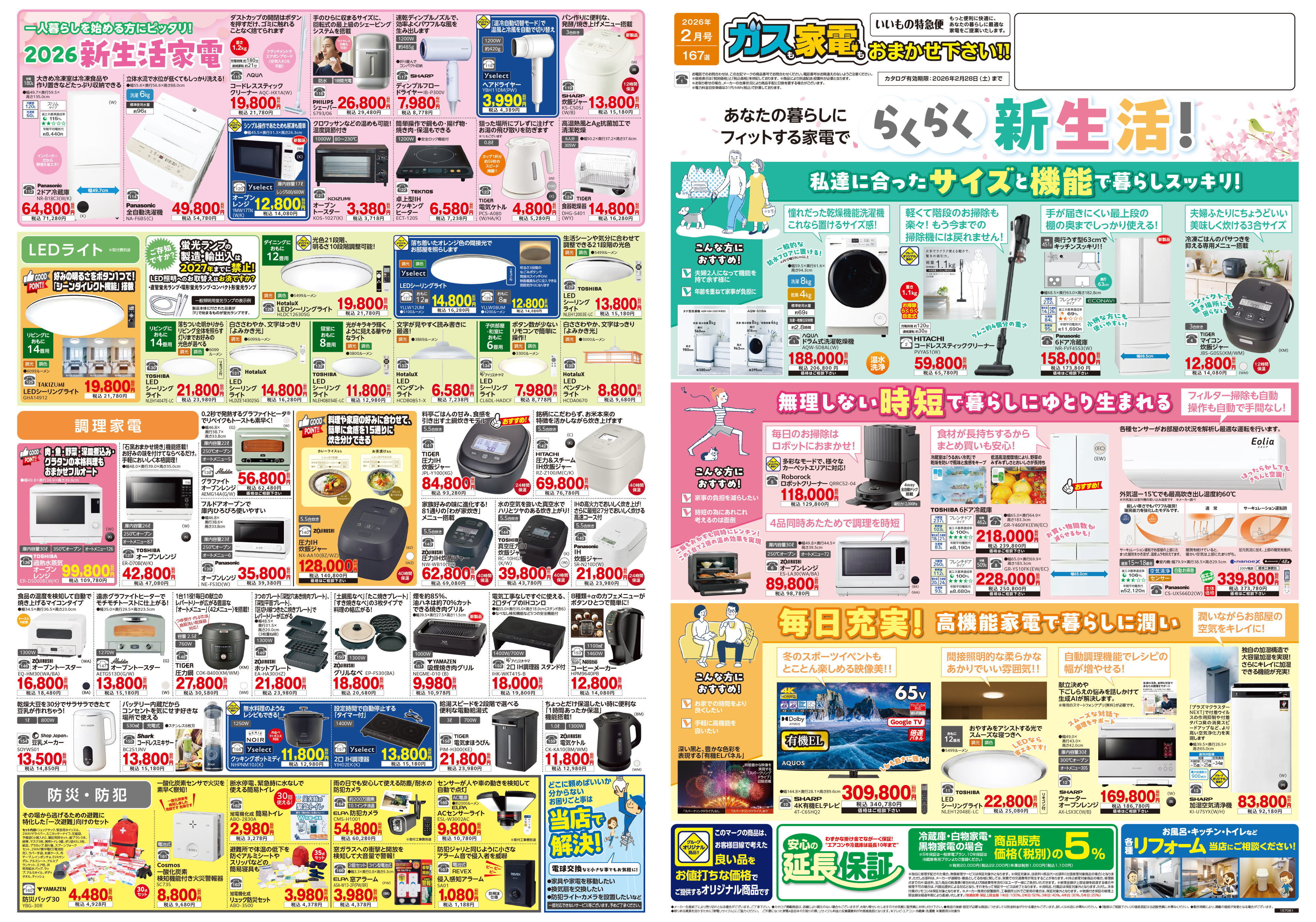 「 最新家電フェア!(2月)」のお知らせ 当社は、コスモスベリーズ「BFC」に加盟しております。当家電量販店トップグループ企業ならではの価格提供はもちろん、運搬・取付設置作業は、当社のなじみの社員が行いますので、お客様のご要望にも最大限にお応えできるのが特徴です。また、お納めした製品については、「お客様がキチンと使えるようになるまで」を仕事としておりますので、箱入りのまま納品するようなことは致しません。購入後の万が一の不具合にも、常時代替品を準備し、地元ならではの迅速さで対応いたしますので安心いただけます。 トップページへ戻る お知らせ一覧はこちら
